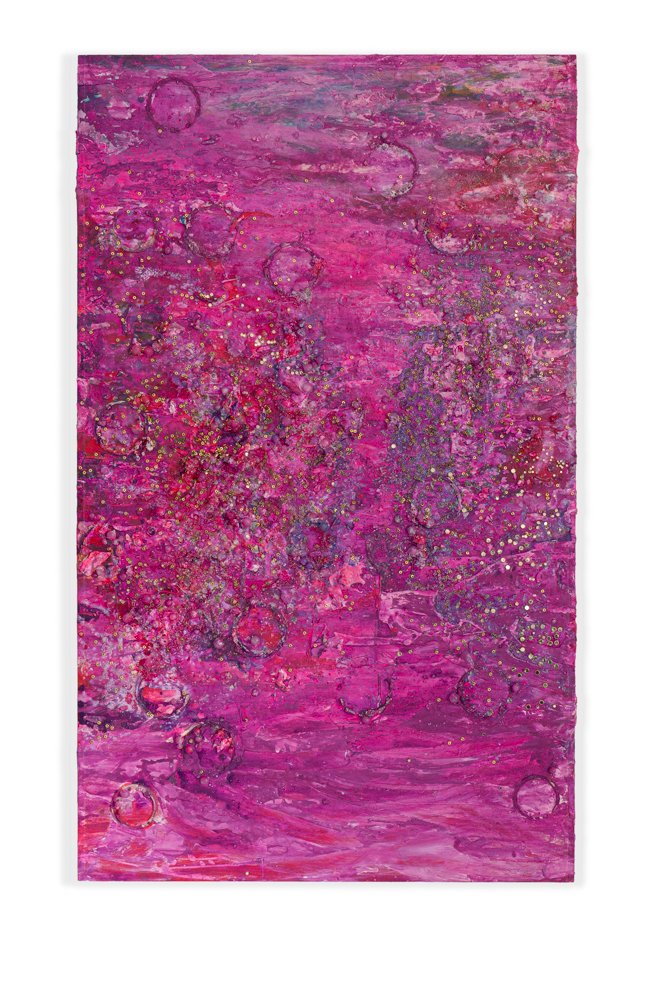 Cristina Lei Rodriguez: Baroque Islands presents new and recent paintings. For years, the artist combines sculpture, installation, and painting in her work as well as photographic scans. As opposed to including different media, this exhibition offers a special opportunity to consider her painting practice, with its dense layers evoking a multitude of forms. Beneath each layer of material, is another layer that offers a glimpse into an alternative world. Each painting is its own island, its own space, where a mix of materials from beads to paint and lacquer combine to make glistening surfaces that relate surfaces suggesting both built and natural environments.