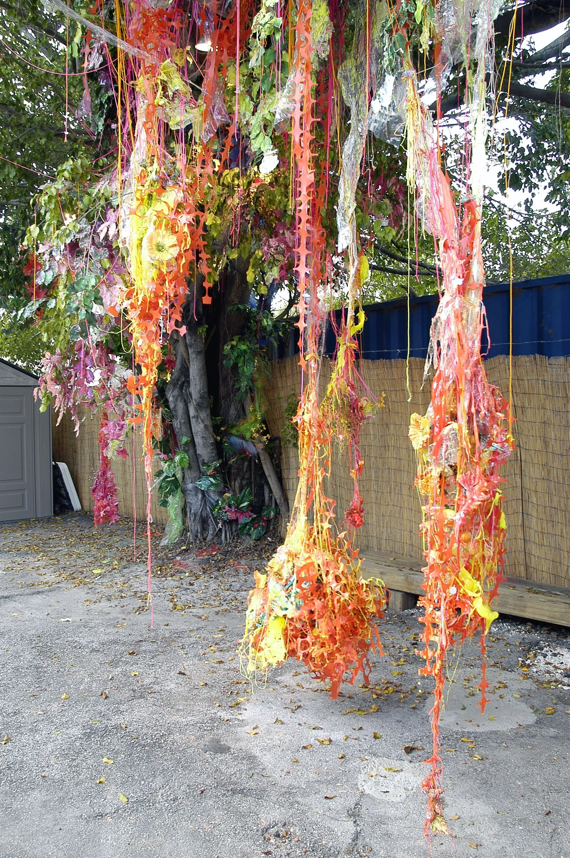 Enchanting Intruder, 2003Mixed media sculptureSite specific installation on ficus tree at Rocket Projects, Miami